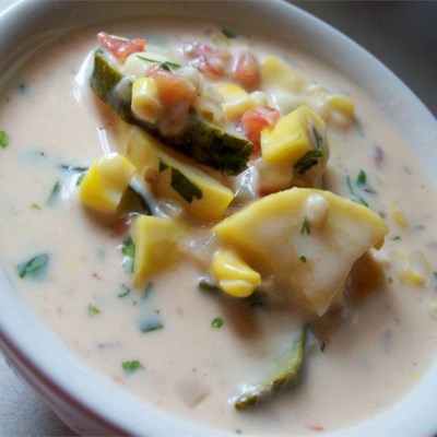 We can't wait to make this delicious, slightly spicy soup every summer when zucchini and squash are plentiful in our garden. We like to serve this soup with warm tortillas.